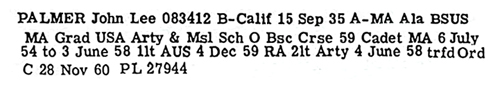 Gretchen Elizabeth, transfer to Ordnance-- 1961: Purdue University.
